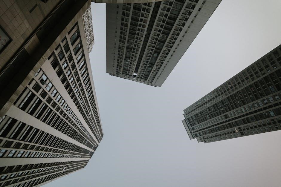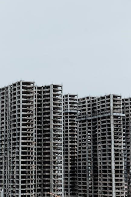 The IEBC 2021 PDF outlines requirements for roof coverings, including materials like shingles, tiles, and membranes, ensuring they maintain their protective function. It also addresses the importance of proper drainage, ventilation, and flashing to prevent water damage and maintain the roof’s lifespan. Provisions are included for roof assemblies supporting equipment, such as HVAC units, ensuring the structure can safely bear the added load.